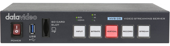 It’s often useful during a live event to record the output locally, so you can immediately make the stream available for VOD viewing or grab highlights. In these instances, you might have to stream at relatively low quality — say 4 Mbps for a 1080p stream — but record at a higher bitrate, like 12 Mbps, for better quality. The DataVideo NVS-35 shown below ($999.69 at B&H, no reviews) supports onboard recording via an SD card slot on the front, and you can configure both streams to different quality levels.