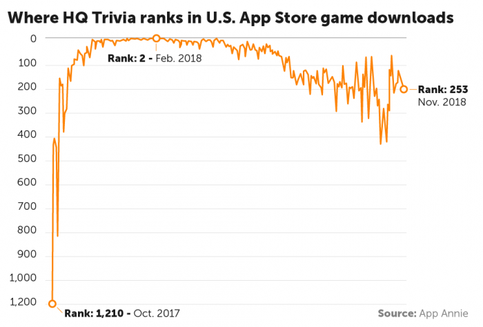 Vine rose and fell, and from its ashes HQ Trivia was born. The app’s user base grew exponentially, and then began to sink.