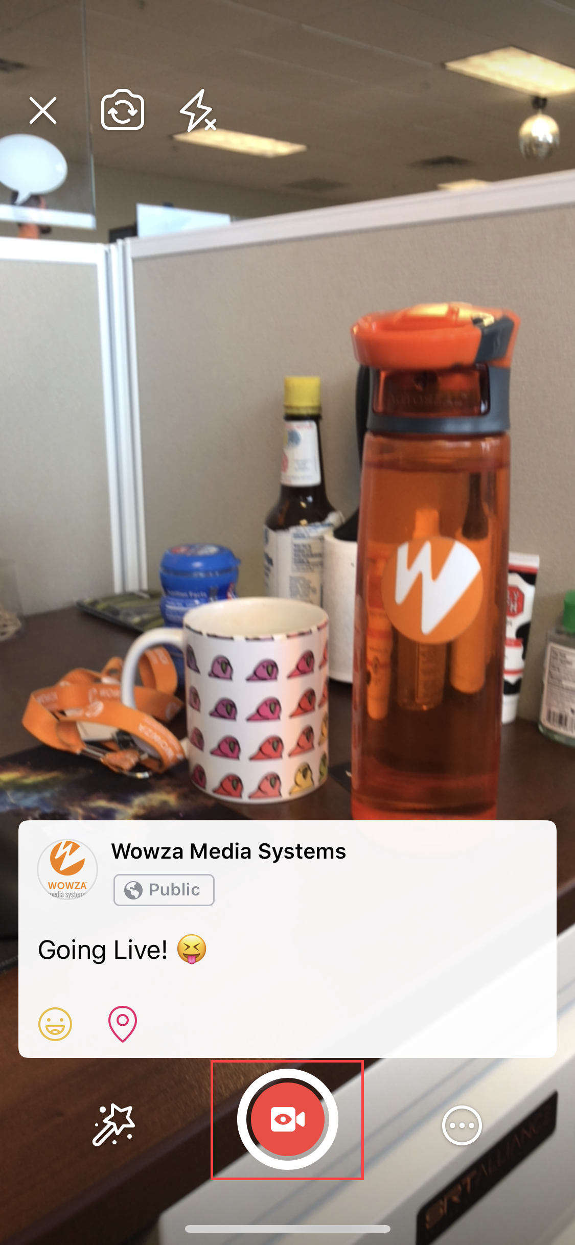 Hit the red “Go Live” button, denoted by the camera icon, at the bottom of the screen—and your broadcast will begin.