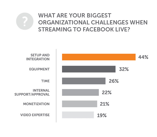 Facebook Live has specific requirements in terms of bitrate, resolution and other settings that have to be properly configured for successful streaming—which can be difficult for those who aren’t familiar with the platform. For a combined 38 percent of respondents, these production challenges are preventing them from streaming to Facebook Live at all.