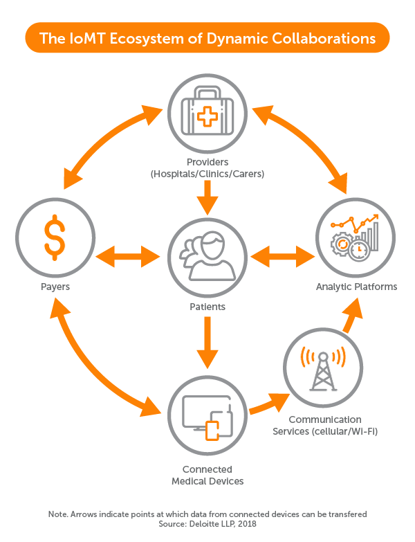 “The IoMT brings together people (patients, caregivers, and clinicians), data (patient or performance data), processes (care delivery and patient support), and enablers (connected medical devices and mobile applications) to deliver improved patient outcomes efficiently.”