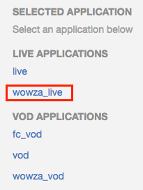 Let’s make changes to your stream. Click once on the wowza_live application under Live Applications.