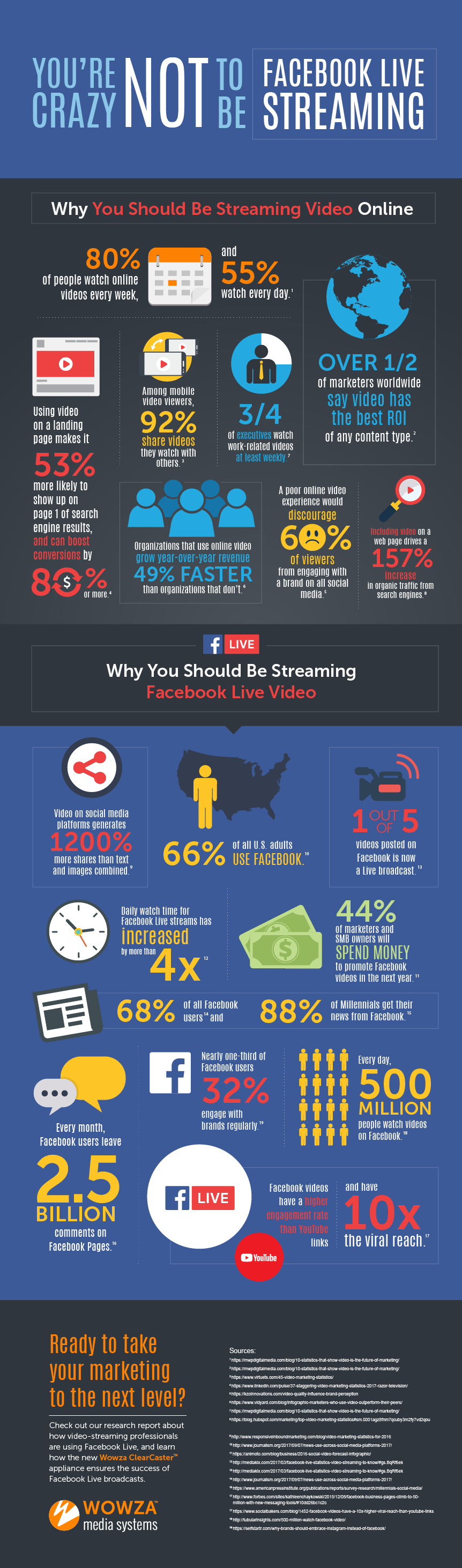 In short: If you’re not streaming video to Facebook Live, you’re crazy. Why? The facts speak for themselves. These are just a few of the reasons your organization needs to be streaming video on Facebook Live: