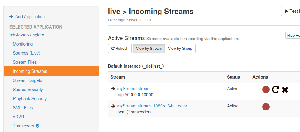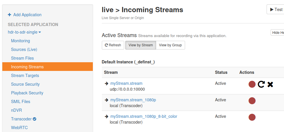 - In Wowza Streaming Engine, go to the Incoming Streams page for the application and verify that the stream appears as active.
