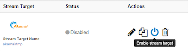 - If the Status of an individual stream target is Disabled, click the Enable icon for the stream in the Actions column.