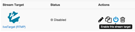 2. If the Status of an individual stream target is Disabled, click the Enable icon for the stream in the Actions column.