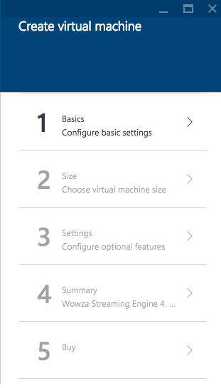 Use the Create a virtual machine blade to configure your Wowza Streaming Engine virtual machine.